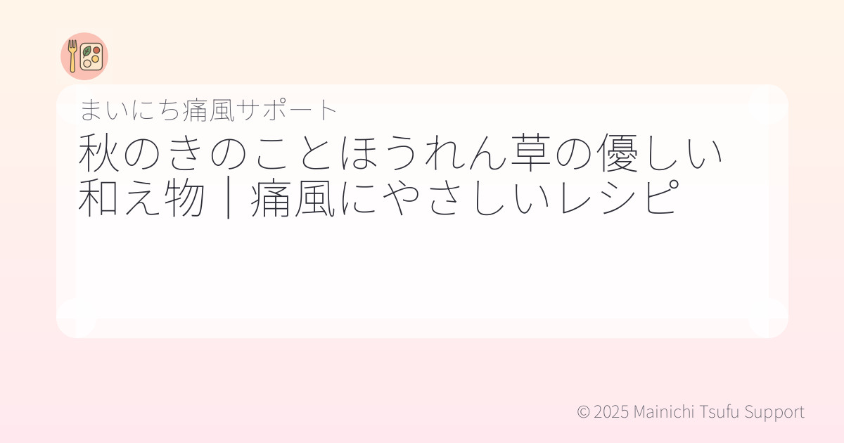 ほうれん草ときのこは低プリン体の食材で、痛風に配慮したレシピです。ごまや調味料を使うことで、薄味でも満足感を高めています。