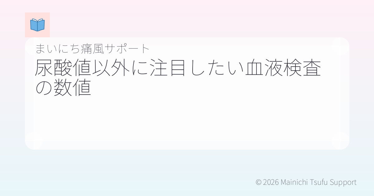 痛風は尿酸値の上昇によって引き起こされる病気ですが、血液検査で見るべきは尿酸値だけではありません。痛風を持つ夫を支えるためには、他の数値にも目を向けることが大切です。これにより、症状の改善や予防に役立つ情報を得ることができます。