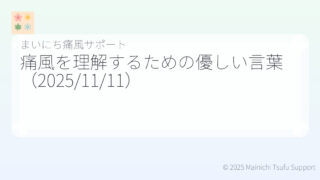 季節・コラム 目次 季節・コラムカテゴリについて主なテーマ気軽に読める痛風サポート情報 季節・コラムカテゴリについて 季節ごとの痛風予防、日常の気づき、運営者視点のコラムなど、気軽に読める記事をまとめたカテゴリです。 主なテーマ 季節で変わる痛風リスク 優しい言葉・コラム系 発作が起きやすい季節 日常の工夫や気づき 気軽に読める痛風サポート情報 専門記事では語りにくい、日常に寄り添う内容を中心に紹介しています。