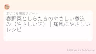 春野菜としらたきのやさしい煮込み(やさしい味)|痛風にやさしいレシピ