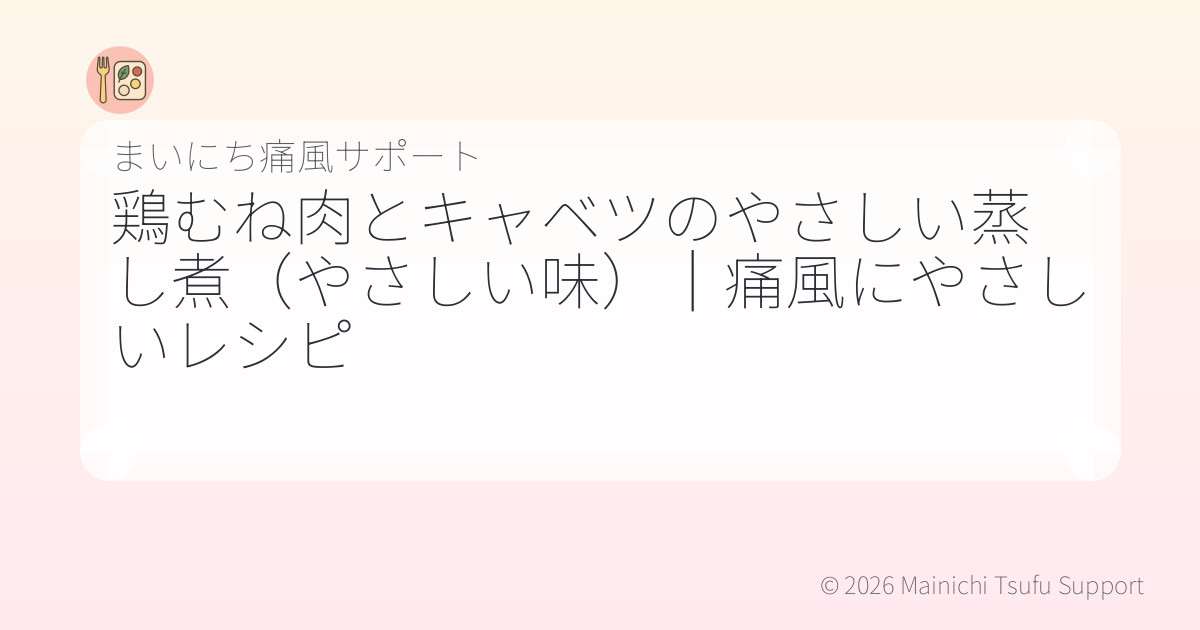 鶏むね肉はプリン体が比較的低く、キャベツやにんじんも低プリン体の野菜です。優しい調理法で栄養を逃さず、体に優しい一品に仕上げました。