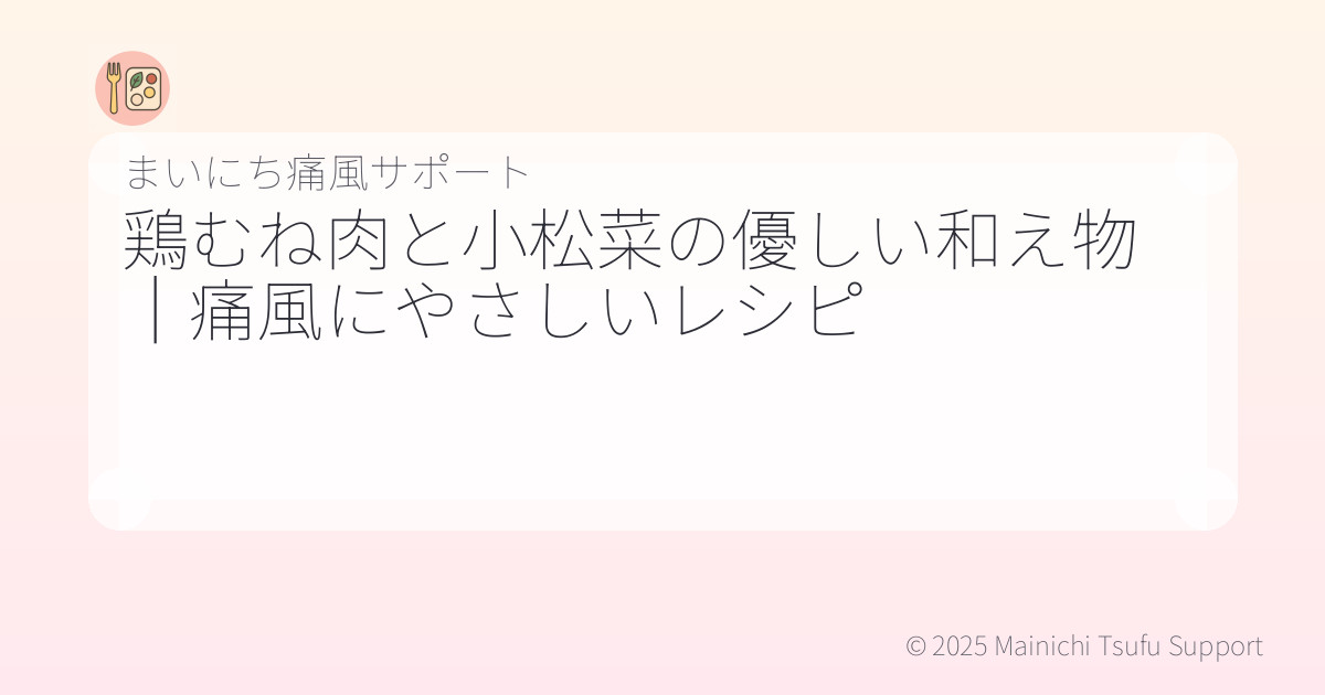鶏むね肉と小松菜は低プリン体の食材で、鶏むね肉は高たんぱく・低脂肪、また小松菜はビタミンやミネラルが豊富です。