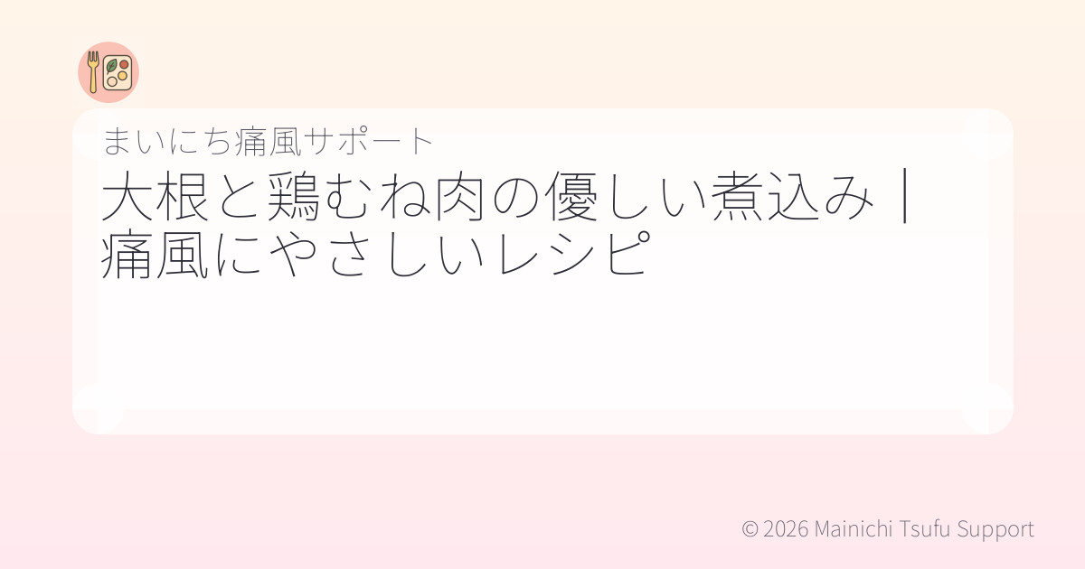 鶏むね肉はプリン体が低く、野菜も多く含むため、痛風に配慮したレシピです。大根や人参は栄養価が高く、煮込むことで甘みが引き出されます。