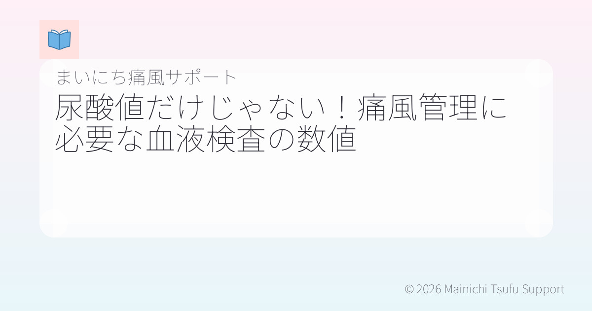 痛風は尿酸値の上昇によって引き起こされる病気ですが、血液検査で確認できる数値は尿酸値だけではありません。夫が痛風を抱えている場合、他の血液検査の結果も理解しておくことが大切です。これにより、より効果的なケアを行うことができ、発作を未然に防ぐ手助けになります。