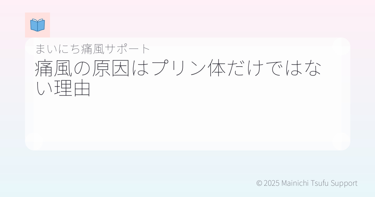 まず、プリン体は確かに痛風の一因ですが、以下のような他の要因も考慮する必要があります。
