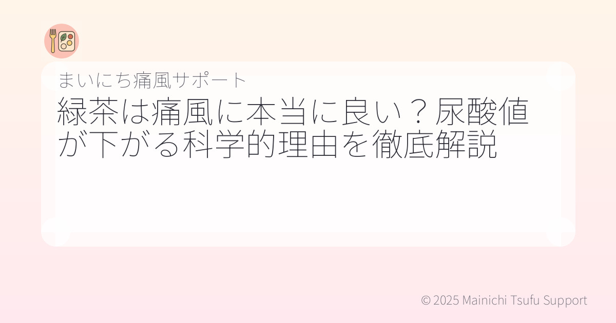 結論から言えば、緑茶は痛風改善に役立つ可能性が高い飲み物 です。カロリーゼロで毎日飲み続けやすく、負担なく生活に取り入れられる点も大きなメリットです。この記事では、緑茶のどんな成分が尿酸値に関係するのか、医学的にわかっている内容を分かりやすく解説します。