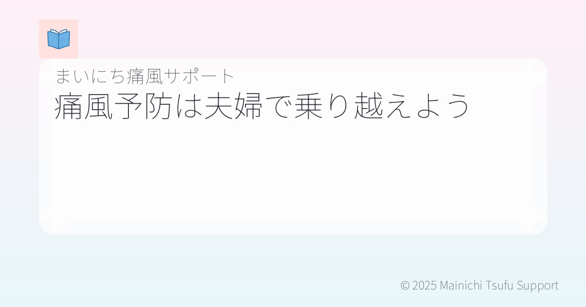 痛風の予防は夫婦のチーム戦です。お互いにサポートし合いながら、健康的な生活を送ることが大切です。コミュニケーションを大切にし、共に健康を意識した生活を楽しんでいきましょう。