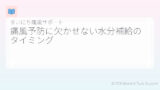 - 水分補給を忘れずに:水分をしっかりとることで、尿酸を体外に排出しやすくなります。夫婦で水を飲む習慣をつけましょう。