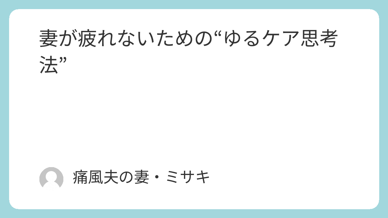 今回は、妻が無理せず続けられる「ゆるケア思考法」を紹介します。