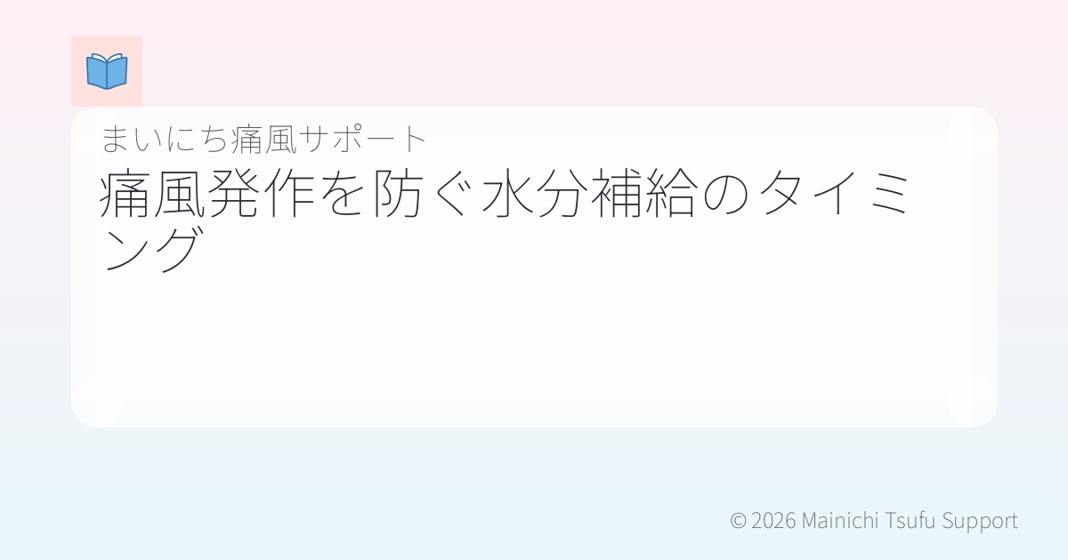 水分補給のタイミングも大切です。日常生活の中で意識して水分を摂ることが、痛風の発作を防ぐ手助けになります。以下のタイミングでの水分補給を心がけましょう。