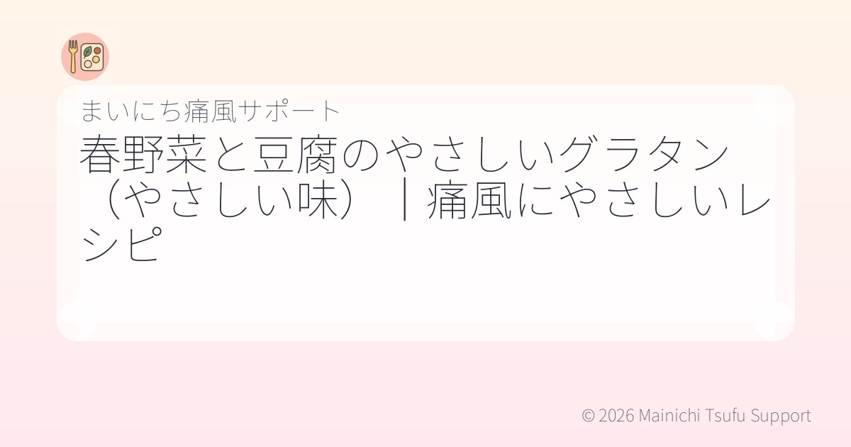 豆腐や野菜を使ったこのグラタンは、低プリン体で痛風の方にも安心です。特に豆腐は高タンパク質でありながら、プリン体が少ないため、安心して食べられます。