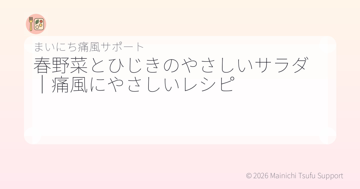 ひじきや春野菜は低プリン体で、健康的な食材を使用しています。また、ドレッシングも控えめにしているため、痛風に配慮したレシピです。