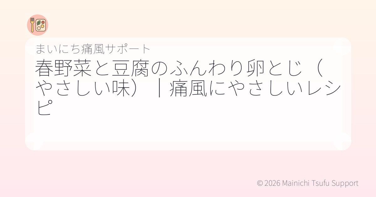 春野菜と豆腐のふんわり卵とじ(やさしい味)|痛風にやさしいレシピ