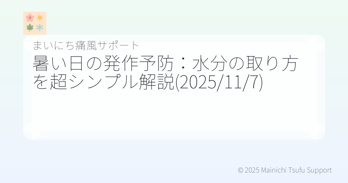 暑い日の発作予防:水分の取り方を超シンプル解説(2025/11/7)