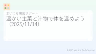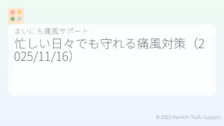 仕事や育児で忙しくてもできる痛風対策|妻が続けやすい習慣(2025/11/16)