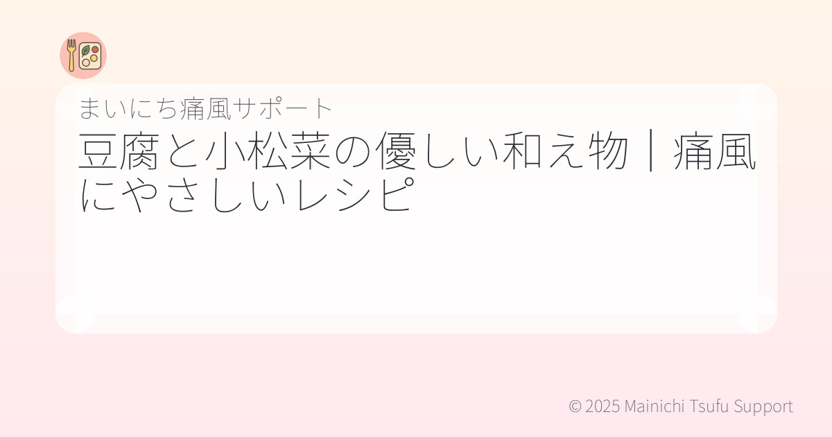 豆腐、小松菜はともに低プリン体で、痛風に配慮した食材です。豆腐は高タンパク質でありながらプリン体が少なく、小松菜はビタミンやミネラルが豊富です。