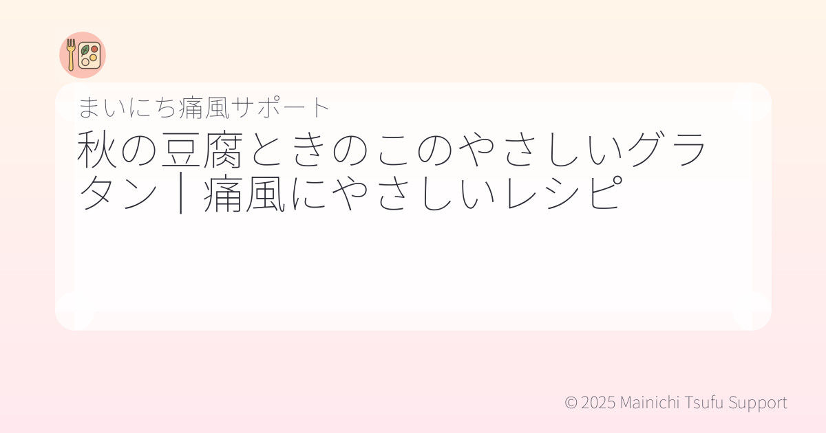豆腐ときのこは低プリン体であり、痛風の方でも安心して食べられます。特に豆腐は良質なタンパク源で、きのこは食物繊維も豊富です。