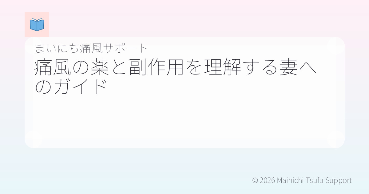 夫が痛風の薬を服用する際、いくつかの対策を講じることで副作用を軽減することができます。以下のポイントを考慮してみてください: