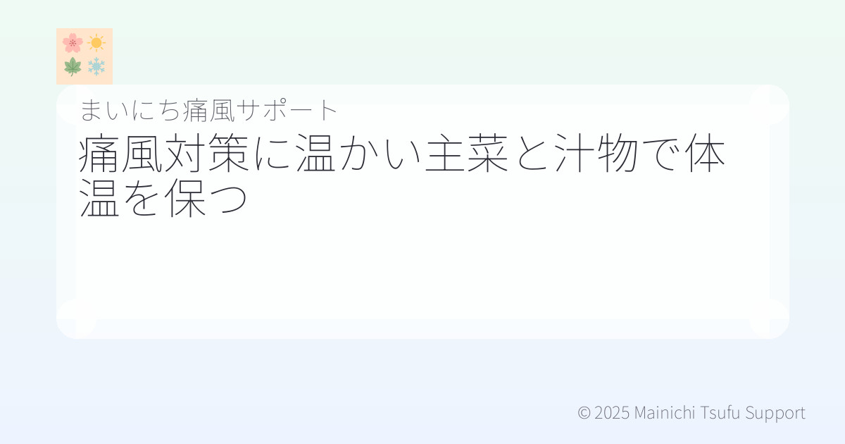 痛風を抱える夫を持つ妻として、日々の食事に気を配ることは大変重要です。特に寒い季節には、温かい主菜や汁物を取り入れることで、体温を保ちながら満足感を得ることができます。体温が低下すると、血液循環が悪くなり、痛風の発作を引き起こすリスクも高まります。そこで、今回は痛風に配慮した温かい料理のアイデアをご紹介します。